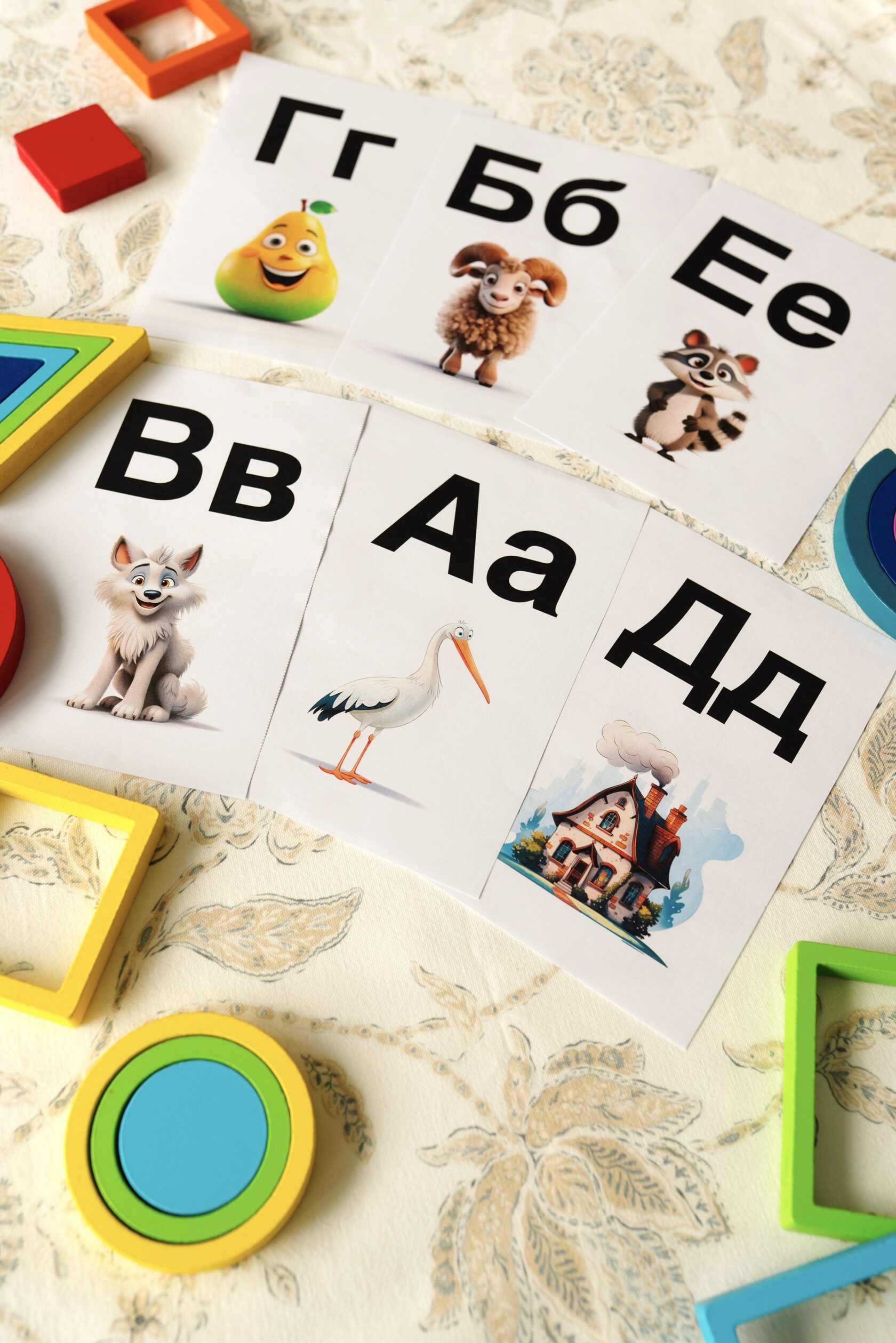 Наглядное и удобное пособие для изучения букв русского языка. Карточки с яркими иллюстрациями помогают детям быстрее запоминать буквы через ассоциации, визуальные образы и игровые задания.