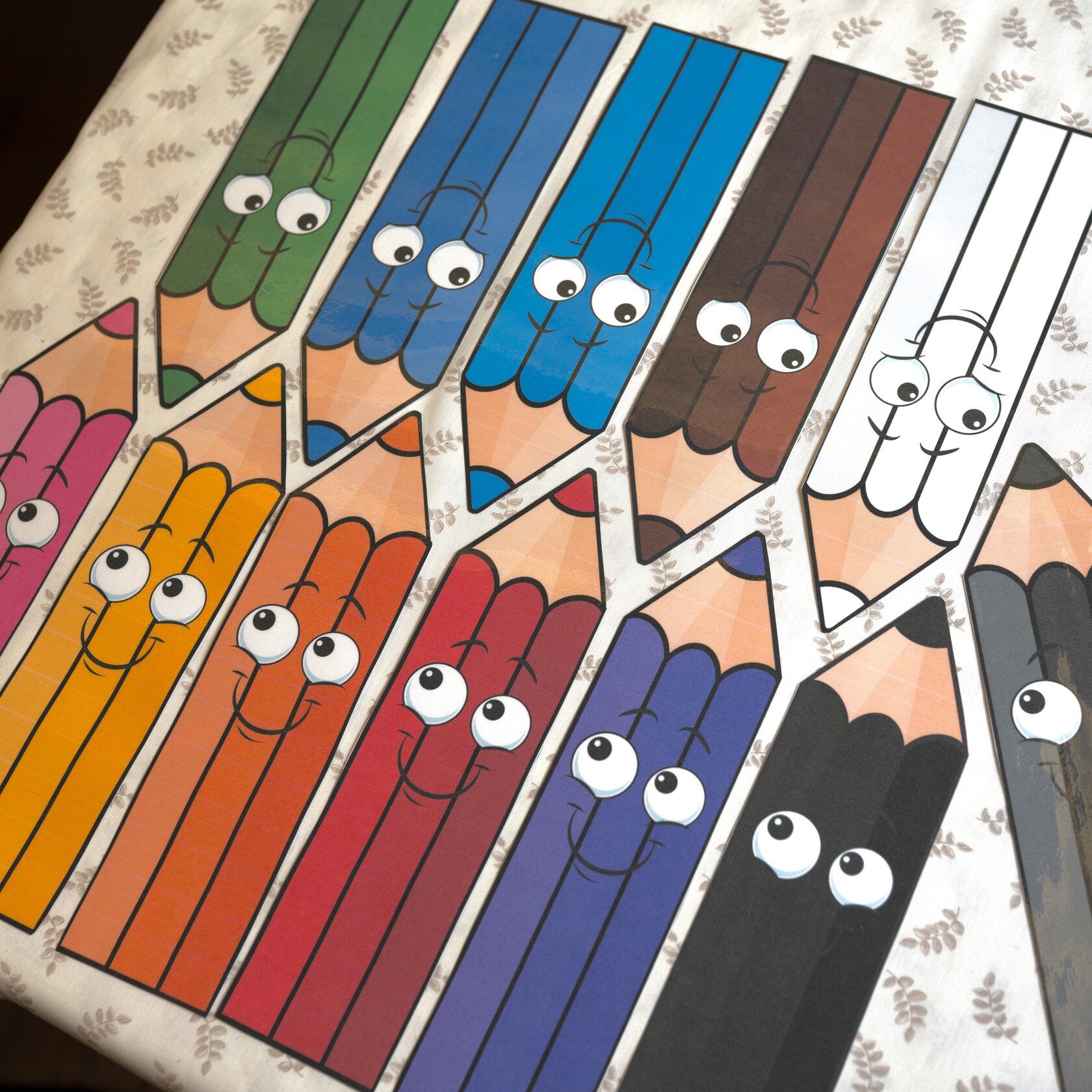 В набор входит: • 12 карандашиков с радостными мордашками (синий, голубой, красный, оранжевый, жёлтый, розовый, фиолетовый, зелёный, коричневый, чёрный, серый, белый) • 12 карандашиков с круглыми окошками для заполнения стикерами • 36 цветных стикеров, подходящих к карандашам (по 3 стикера на каждый цвет)