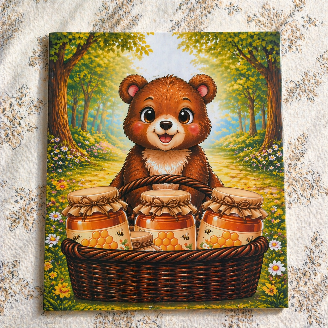 Медведь — корзинка и баночки мёда
