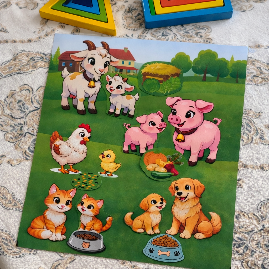 Развивающее пособие «Домашние животные и их детёныши + кто что ест» направлено на формирование у ребёнка представлений об окружающем мире, расширение словарного запаса и развитие логического мышления.